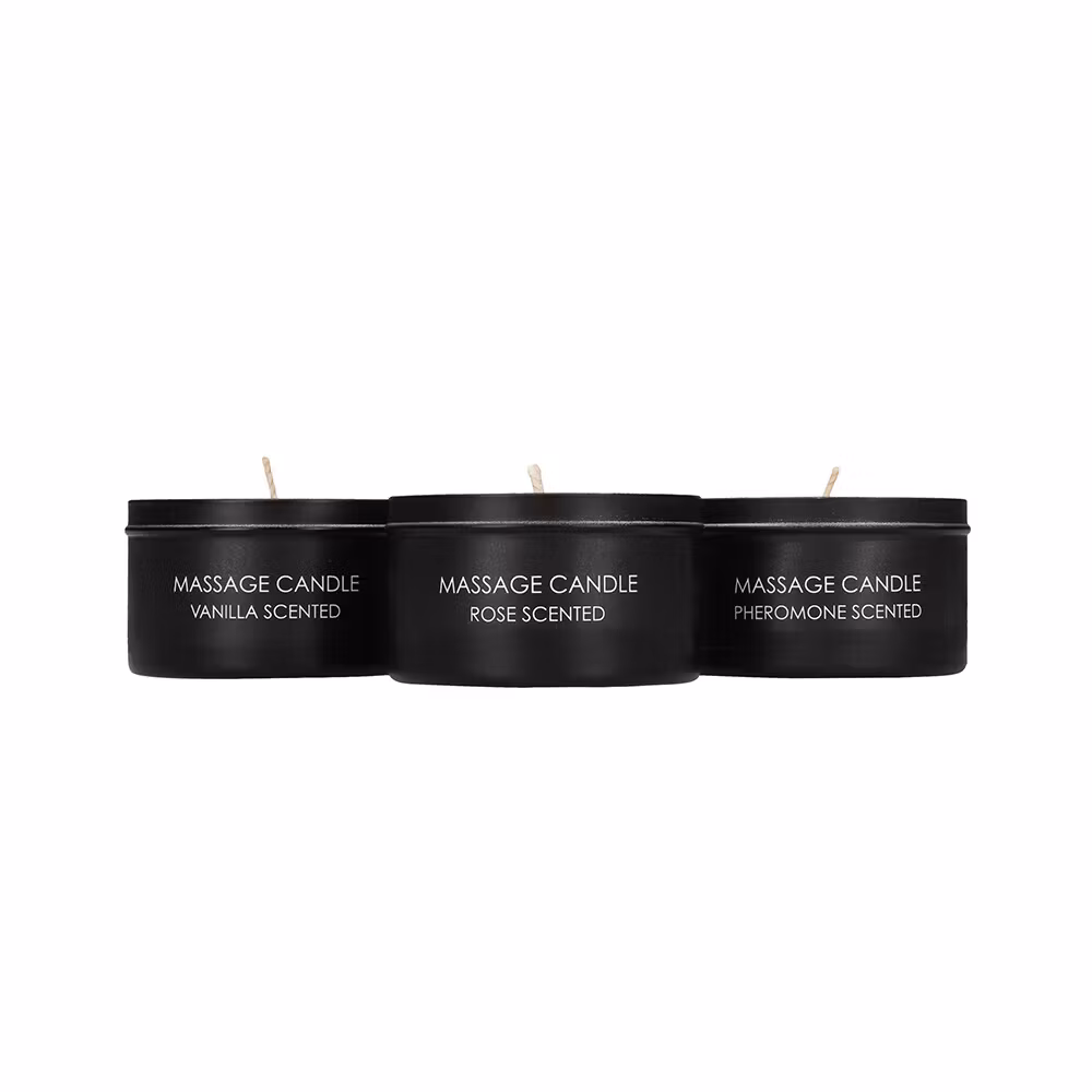 Tänd bara ljuset för att skapa en sensuell stämning och massera sedan din partner till paradiset! När den sensuella doften fyller rummet kommer det varma vaxet att göra sin magi på din älskares hud. Detta trippelvaxljusset är det kompletta paketet för att ta förspel hela vägen till sexspel! Med 3 sinnliga dofter, feromon, vanilj och ros, kommer din älskare att få en livsupplevelse! De 3 ljusen finns i en svart kopp och väger 60 gram, 2,12 oz vardera.