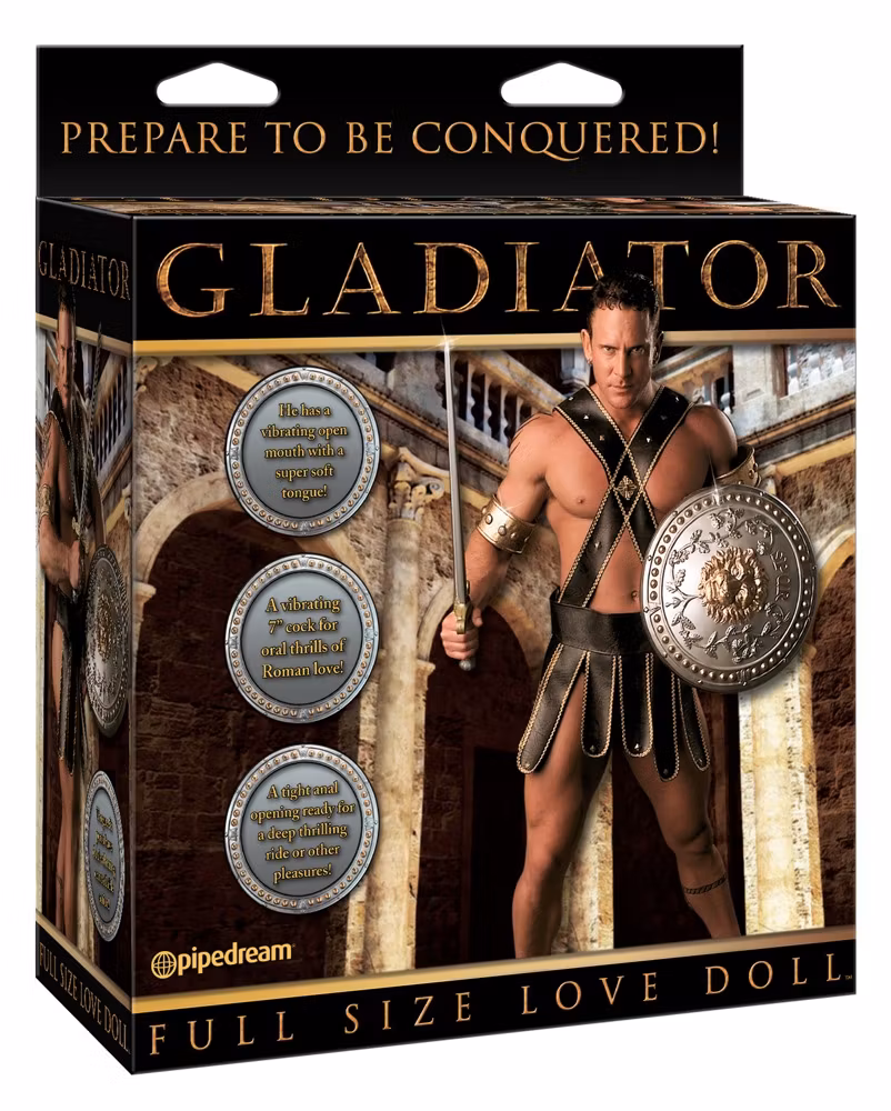Dette er en kraftkar av en gladiator som er klar for det livet byr på av fest og moro. 3D ansiktet har vibrotunge, og han er alltid klar for rimming. Den monterbare dildoen har multispeed vibrasjon og han har hårete analområde. Du trenger 3 x C batterier.