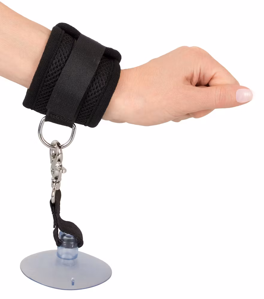 Lenker som forbereder deg på alle erotiske eventualiteter. Så lenge du har en glatt overflate til disposisjon. De ekstra store sugeskålene kan festes på alle glatte overflater og holder på plass under forskjellig type lenkelek. Selve håndlenkene er polstret og lukkes med borrelås. Perfekt for både nybegynnere og erfarne.