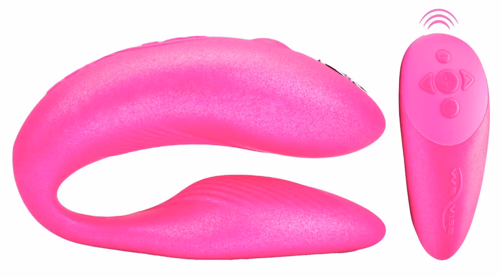 Med biofeedback fjernkontroll og Touch-Sense!C-formet parvibrator Chorus fra We-Vibe som stimulerer i 10 og mer vibrasjonsmodus. Den er fleksibel, holder seg på
