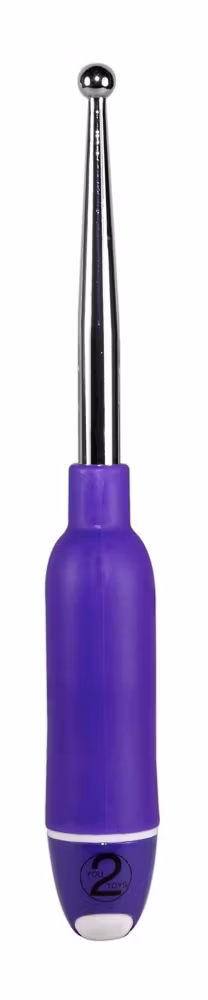 Klitoris stimulator med pirrekule på tuppen og 7-trinns vibrasjon per tastetrykk. Total lengde 16,5 cm, greplengde 9 cm, stav 7,5 cm. Stavens diameter 0,1-0,7 cm. Kulas diameter 0,7 cm. Lilla/sølv. Materiale: Metall, silikon. Inklusive rundcellebatterier.