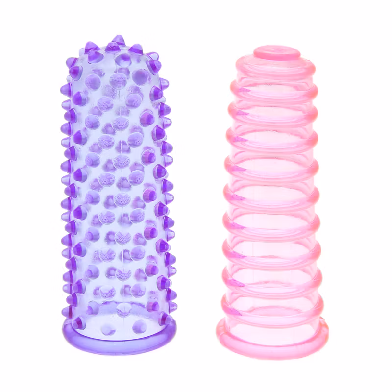 Dessa Lust fingrar ger lust till hands. Denna två-pack av klitoris stims innehåller en rosa räfflad och en lila nubby version. Låt fingrarna sköta snacket