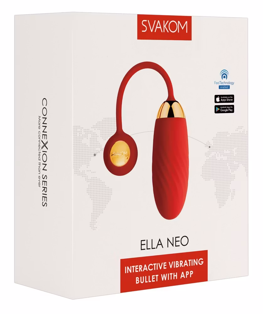 Oppladbart, vanntett vibroegg til vaginal og anal nytelse. 11 stillegående og avvekslende vibrasjonsmodus justeres enkelt i enden av hentesnora. Kan også fjernstyres per Svakom app (med ekstra intensiteter og overraskelsesvibrasjon) eller FeelConnect 3 app med 3 helt nye hovedfunksjoner: Long Distance kontroll (til enhver tid over hele verden), forbindelse til interaktive 2D videoer og interaktiv webcam funksjon.