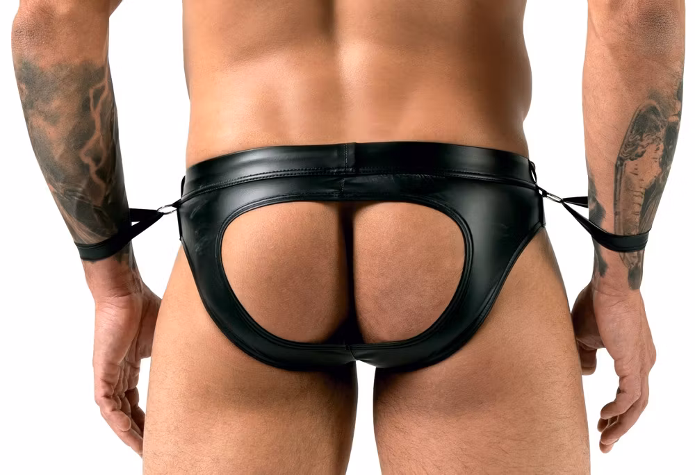 Sexy rumpefri jock fra Svenjoyment Bondage i trendy mattlook som gir perfekt betoning av kroppens beste deler! I sida har jocken ringer hvor de vedlagte håndlenkene festes med borrelås.