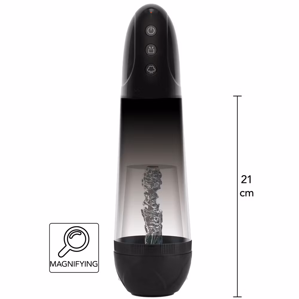 Slip your penis in the tube, hold it tight against your crotch and start the automatic pumping motor! The crystal-clear sleeve works as a magnifier that provides incredible visual stimulation. The texture tunnel of the sleeve combined with automatic suction, stroking and visual stimulation leads to the ultimate pleasure. Select the most comfortable suction mode and watch your penis grow bigger and harder. Get ready to boost your size and confidence with FUSION X PENIS PUMPS!